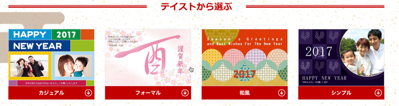また数が多いだけではなく、テンプレートのテイストもカジュアル、フォーマル、和風、シンプルと4つもあるので、楽しく選ぶことができます。