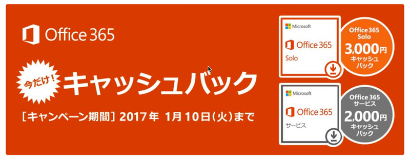 しかも、今ならマイクロソフトが3000円キャッシュバックキャンペーンが開催されています。