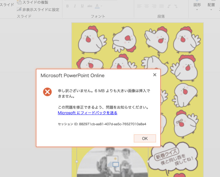 画像の制約というのは、6MB以上の画像ファイルを扱えないというものです。