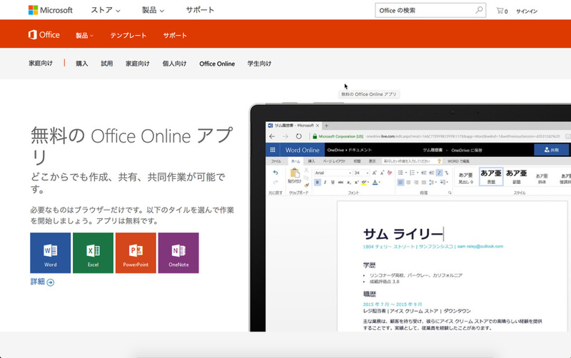 Office OnlineならばOfficeが無料で使える
