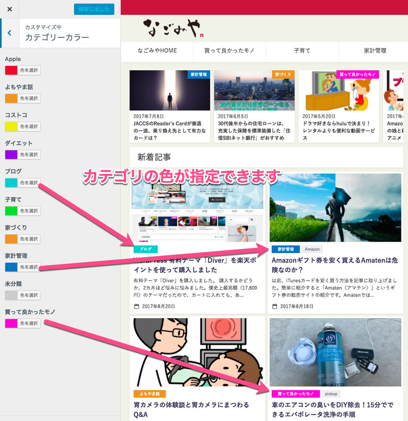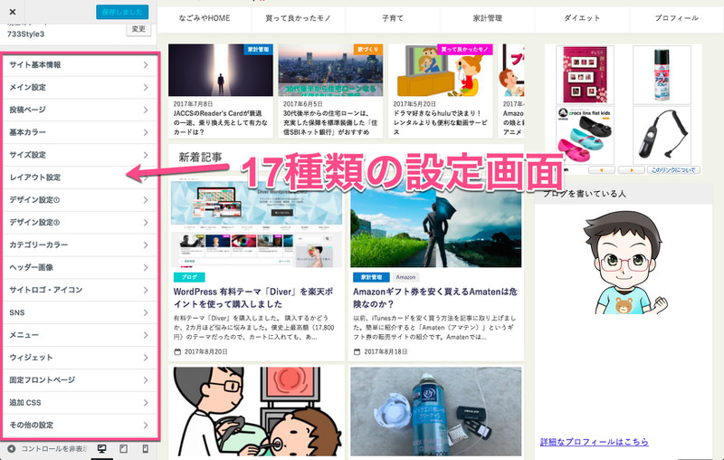 Diverというテーマは、カスタマイズ無しでも大概のことが実現できます。その理由は設定に関する機能が充実しているからです。