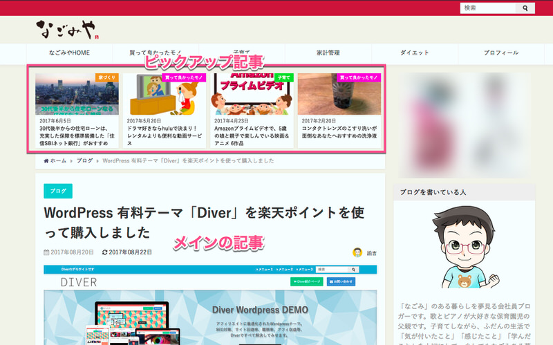 また、まだDiverを使っている人は少ないです。僕のブログで初めて見たという方が多いはずです。他とは違うテーマにしたいというブロガーさんには、今が旬のテーマです。